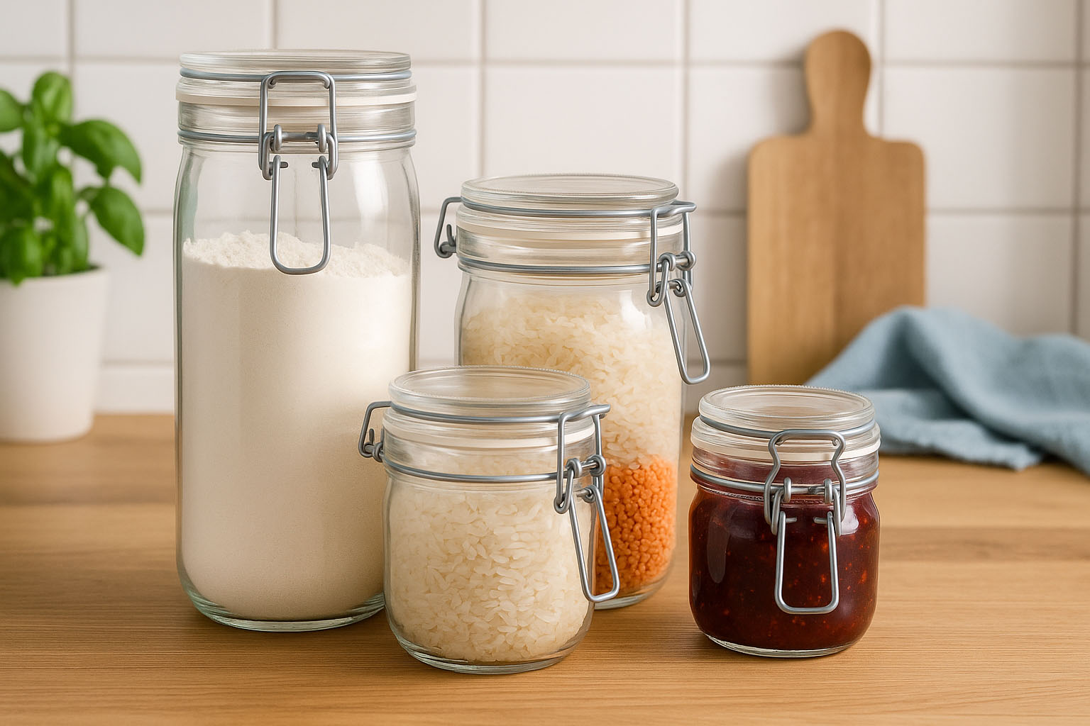 Tack vare det beprövade bygelstängningssystemet är serien „Fido“ utmärkt för konservering, förvaring och lagring av livsmedel. Från hemgjorda marmelader och inläggningar till torra ingredienser som mjöl, socker eller kryddor – glasen bevarar färskhet och aroma på ett pålitligt sätt. Även för kreativ presentation av hemlagade specialiteter eller som hållbar förpackning för delikatesser är „Fido“ det perfekta valet.