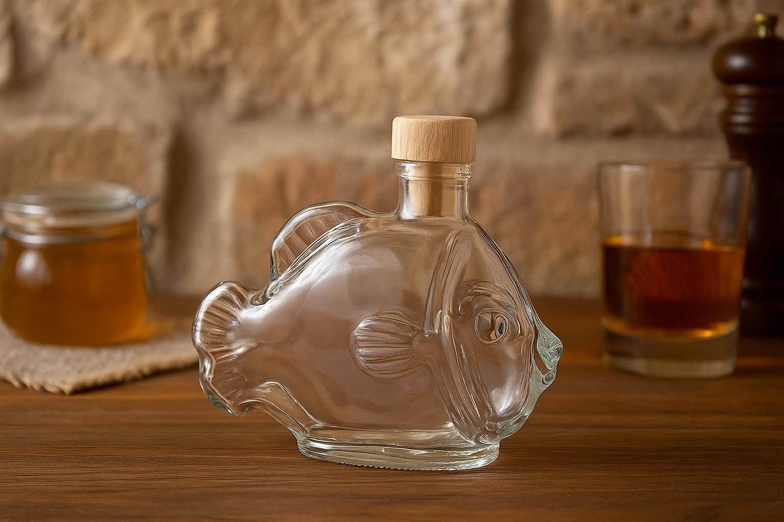 Glasoflaskor 200 ml glasflaska 'Fisk', öppning: kork
