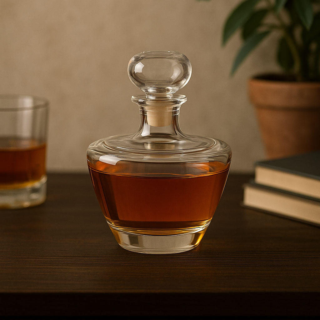 Den klara glasflaskan „Homme“ imponerar med sin eleganta, böljande form och en unik design som påminner om flödande vågor. Dess runda grundkropp är konisk och trappstegsformad vid mynningen – en stilfull detalj som ger en särskild visuell djupkänsla. Denna exklusiva flaska tillverkas inom EU och förenar högkvalitativ bearbetning med tidlös estetik. Perfekt lämpad för utvalda spritsorter, brännvin, likörer och andra speciella drycker, framhäver den den ädla karaktären hos varje innehåll. „Homme“-flaskan har en korkmynning, och passande förslutningar finns tillgängliga i vårt sortiment.
