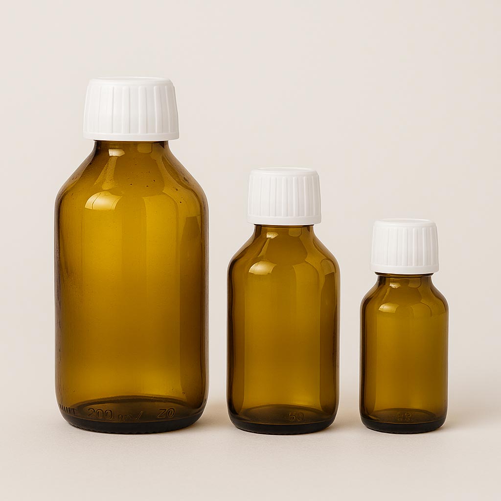 Den bruna läkemedelsflaskan kombinerar funktionell säkerhet med tidlös design och erbjuder en idealisk lösning för farmaceutiska och kosmetiska produkter. Dess runda botten ger ett klassiskt utseende och god stabilitet, medan det genomfärgade glaset säkerställer ett utmärkt ljusskydd och skyddar innehållet från skadliga yttre påverkan. Med en volym från 50 till 1000 ml passar denna flaska för en mängd olika användningsområden. Den standardiserade öppningen PP 28 möjliggör en säker försegling och kan kombineras med lock från vårt sortiment. Denna högkvalitativa läkemedelsflaska står för skydd, kvalitet och en professionell produktpresentation.