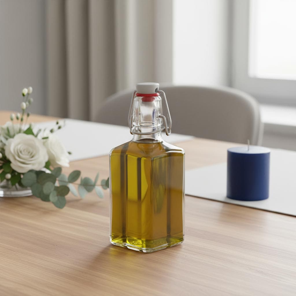 Glasoflaskor 250 ml glasflaska 'Rialto', kvadratisk, mynning: bygelkapsyl