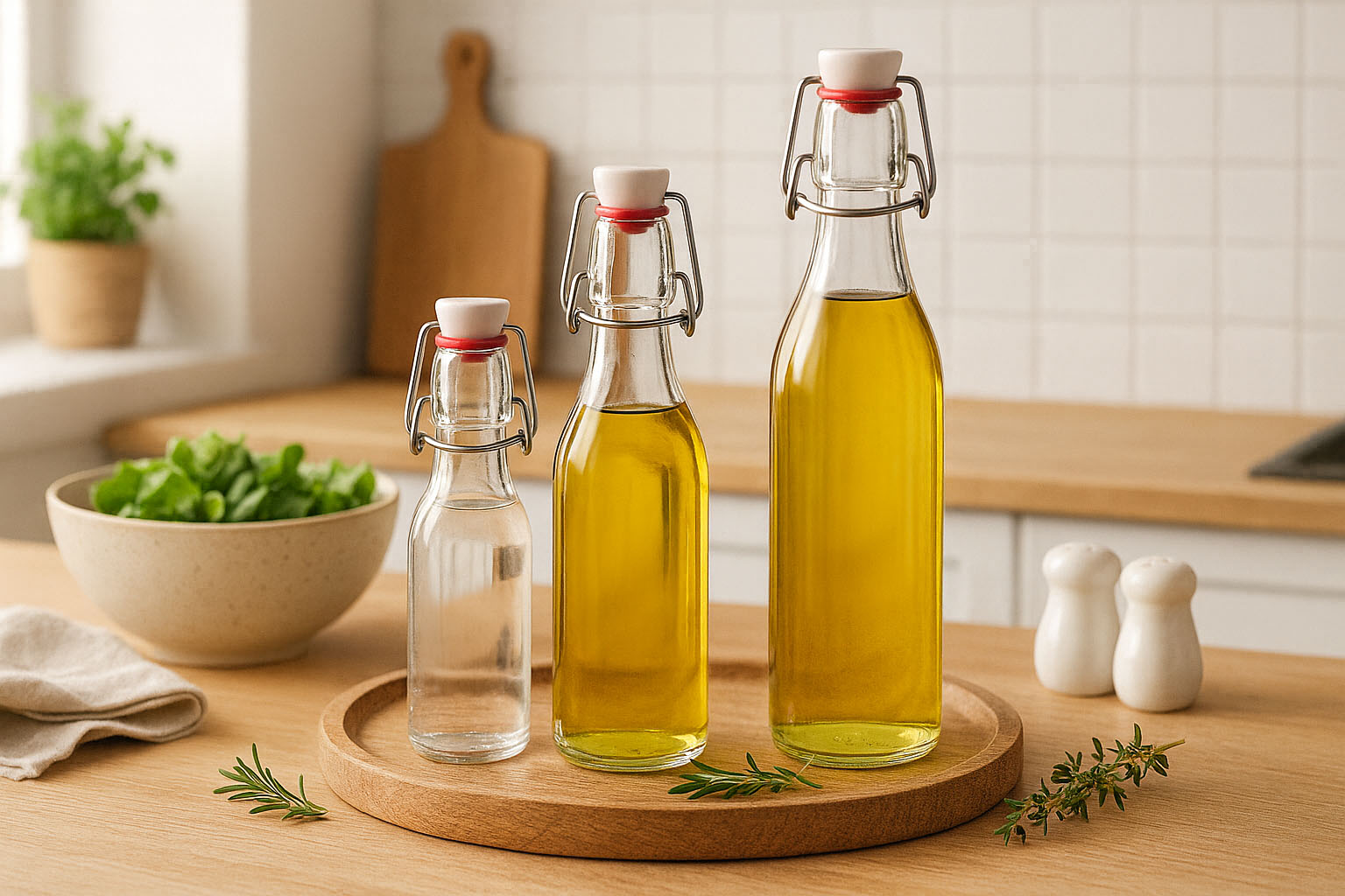 Serien „Swing“ förenar stilren design med funktionell mångsidighet. Tillverkad av den välrenommerade italienska tillverkaren Bormioli Rocco, utmärker sig denna slanka flaska genom sin eleganta form och den fyrkantiga botten som ger stabilitet. Tillverkad av robust glas och tillgänglig i färgerna klar och vit (frostat), sätter „Swing“ estetiska accenter och säkerställer en tilltalande presentation. Volymstorlekar från 250 till 1000 ml erbjuder flexibla möjligheter för olika användningsområden. Den medföljande bygelkorken garanterar en säker förslutning och ger flaskan en traditionell men samtidigt modern känsla.