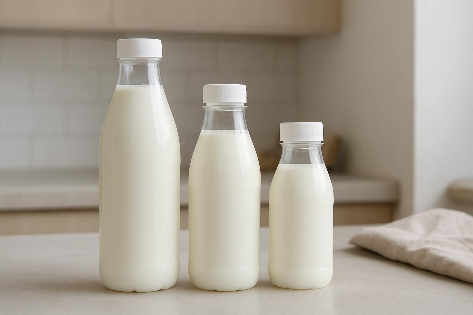 "Milk and Juice" – praktiska vid halsen-flaskor för färska livsmedel