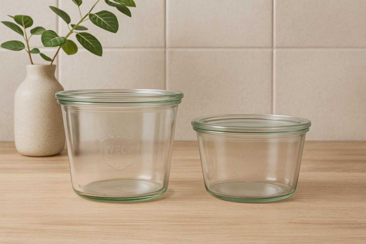 WECK:s rundade glaskanter är en väsentlig egenskap hos de traditionella konserveringsglasen. De möjliggör en enkel och säker förslutning med hjälp av ett glaslock, en gummiring och de karakteristiska konserveringsklämmorna. Den jämna, rundade formen på kanten säkerställer en optimal tätning vid konservering och underlättar rengöringen. I vårt sortiment hittar du passande lock och gummiringar från WECK för olika glas och användningsområden.