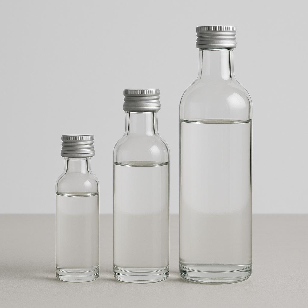 Krugflaskan kombinerar en slank, hög silhuett med funktionell mångsidighet och erbjuder en stilfull förpackningslösning för fina spritsorter, exklusiva oljor och aromatiska ättikor. Dess klara glas framhäver innehållets renhet, medan den korta halsen ger en kompakt och elegant form. Finns med PP-18- eller PP-28-öppning, för vilka passande lock finns i vårt sortiment, vilket säkerställer en säker och pålitlig förslutning. Finns i storlekar från 20 till 500 ml och är idealisk för små produktmängder, provsmakningar eller exklusiva smakmässor, men också för större påfyllningar.