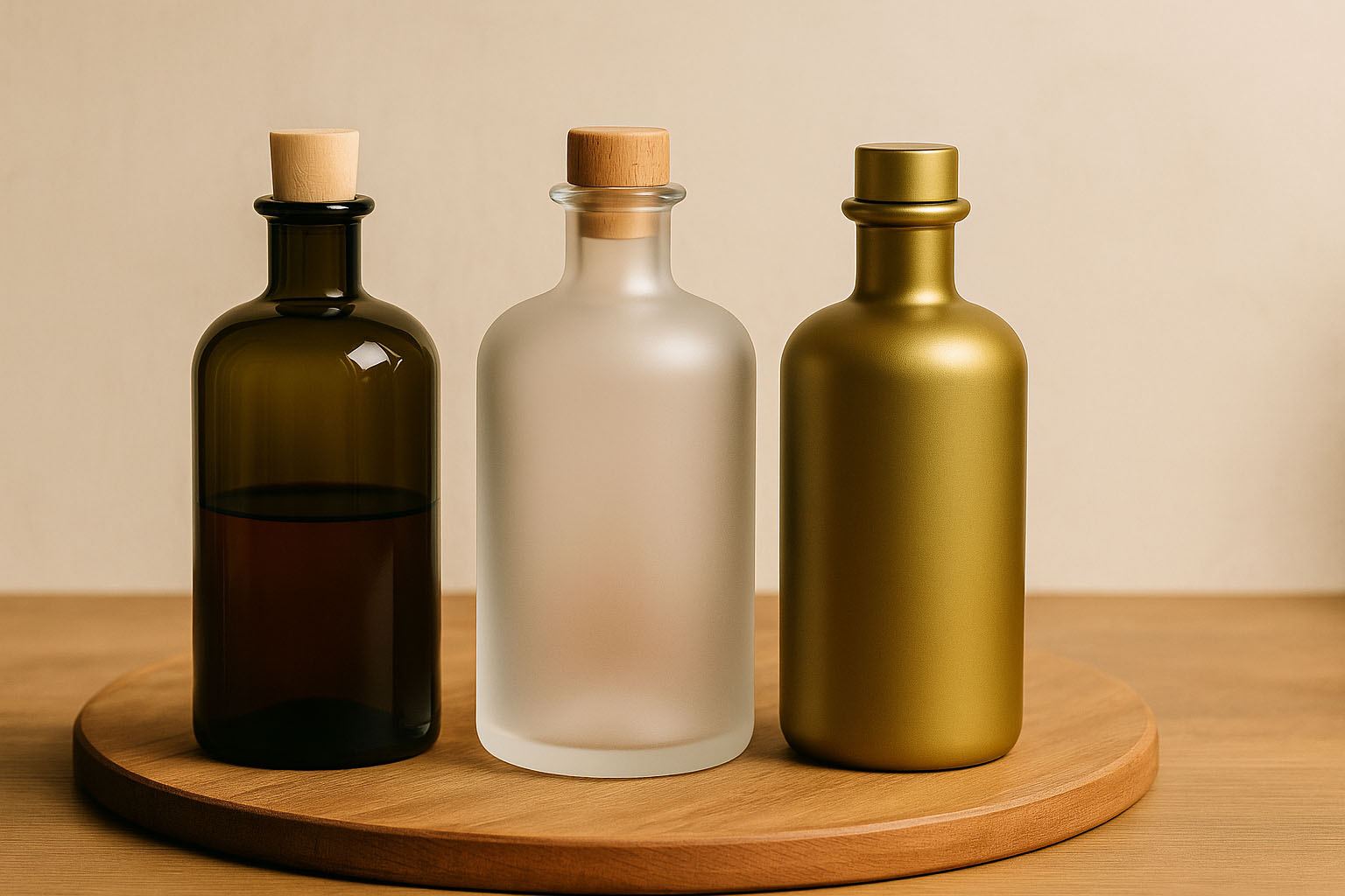 Apotekarflaskor i retrodesign förenar tidlös estetik med praktisk funktionalitet. Deras runda botten och nostalgiska form påminner om klassiska apoteksbehållare. Finns i storlekar från 40 till 1500 ml samt i klar, svart, antikgrön, guld och frostad, vilket gör att de anpassar sig efter individuella behov. Kompatibiliteten med olika korkar från vårt sortiment möjliggör en stilfull förslutning.