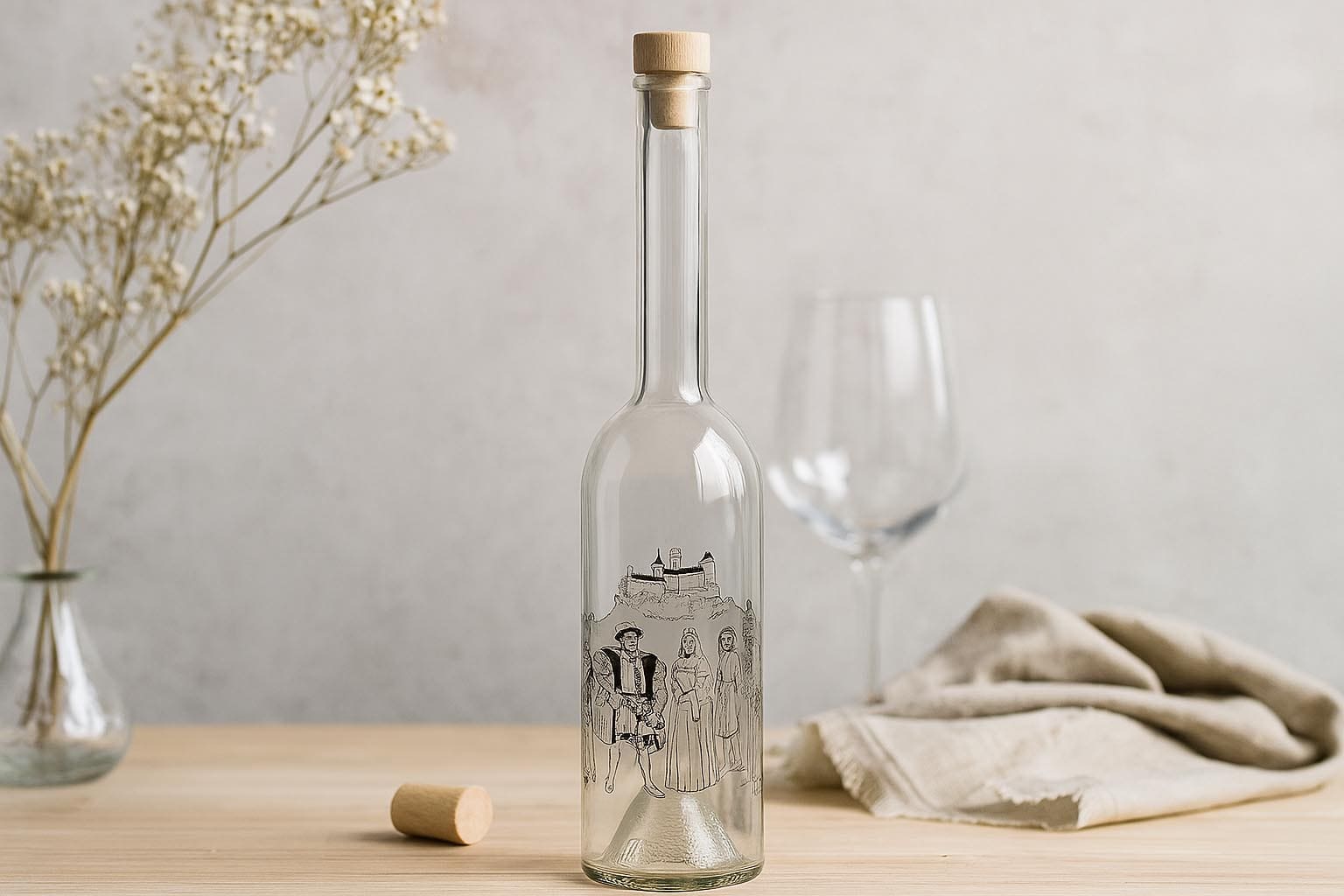 Glasoflaskor 500 ml Glasflaska 'Opera', motiv: Medeltiden, öppning: Kork