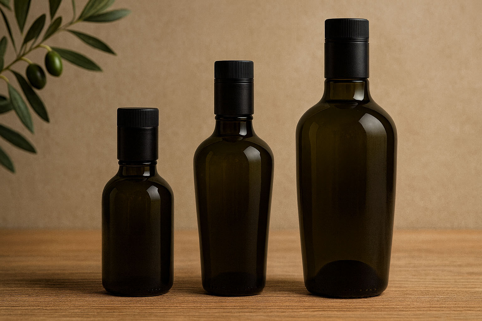 Serien „Oleum“ kombinerar italiensk glaskvalitet med en elegant och funktionell design, speciellt utvecklad för att fylla på högkvalitativa oljor och ättikor. Dess koniska flaskkropp med mjukt rundade axlar ger en harmonisk form som är både estetiskt tilltalande och praktisk att hantera. Den antikgröna färgen skyddar innehållet från ljus och bevarar smak och kvalitet. Finns i storlekar från 250 till 750 ml och passar perfekt för delikatessbutiker, restauranger och hantverksproducenter som vill presentera sina exklusiva oljor i en stilfull och högkvalitativ förpackning.