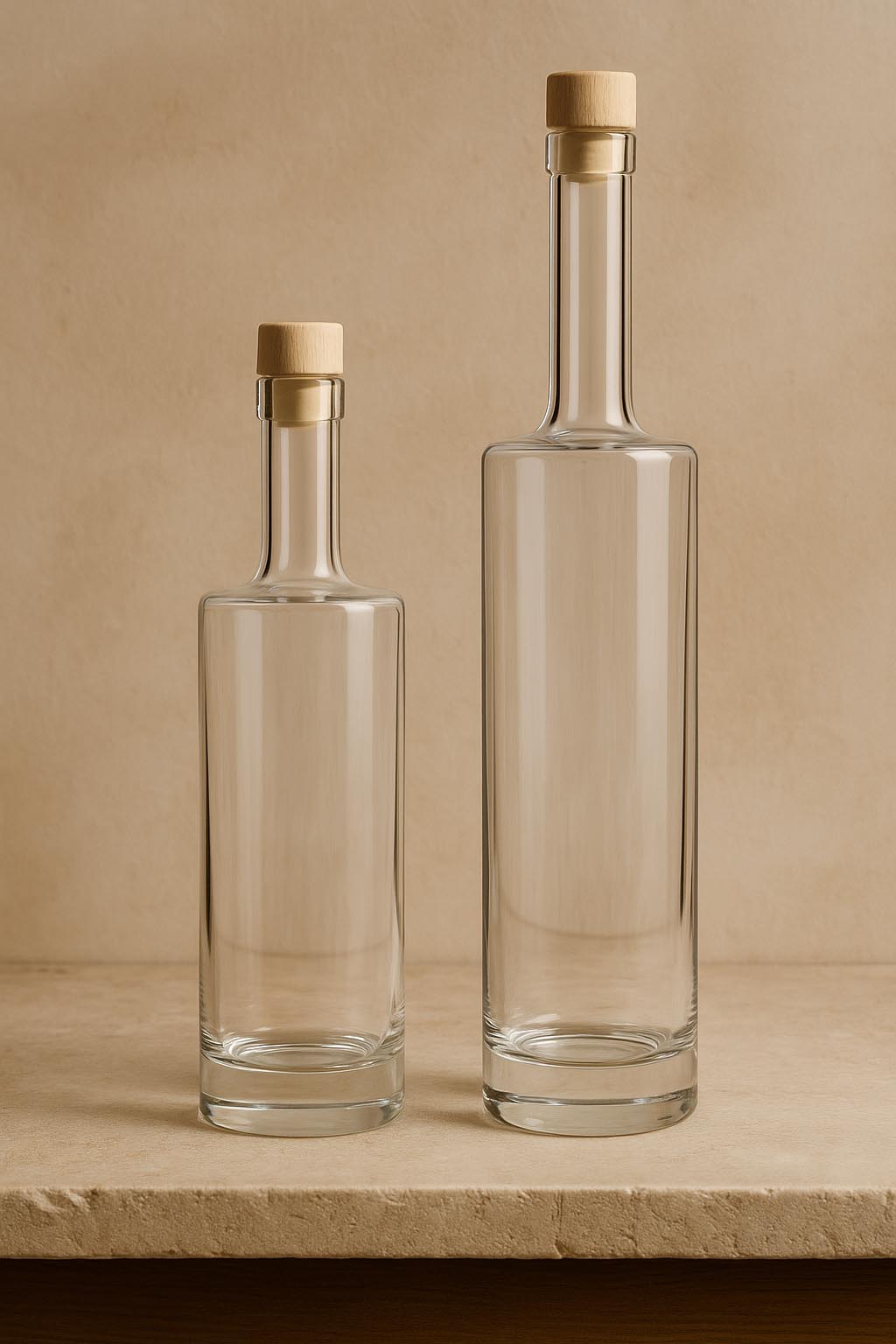 Serien "Titano" förenar kraftfull närvaro med raffinerad enkelhet och sätter nya standarder inom världen för högkvalitativa glasförpackningar. Denna ädla cylinderflaska i klart glas imponerar med en massiv glasbotten som inte bara erbjuder stabilitet utan också ger ett optiskt djup och exklusivitet. Finns i storlekarna 500 och 700 ml, passar "Titano" perfekt för högkvalitativa spritsorter, ädla likörer och karaktärsfulla destillat. Korköppningen säkerställer en klassisk och säker försegling – passande lock finns tillgängliga i vårt sortiment. Med sin robusta elegans och tidlösa estetik är "Titano" det idealiska valet för krävande varumärken som värdesätter kvalitet och uttrycksfullhet.