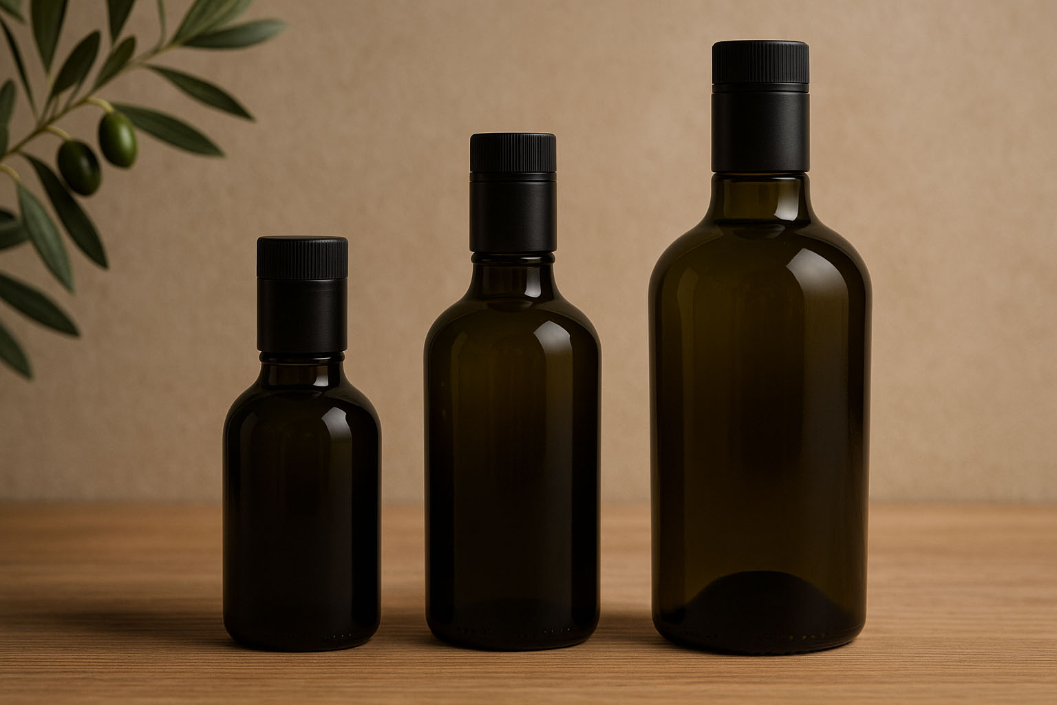Glasoflaskor 750 ml ättik-/oljeflaska 'Biolio', glas, antikgrön, mynning: DOP