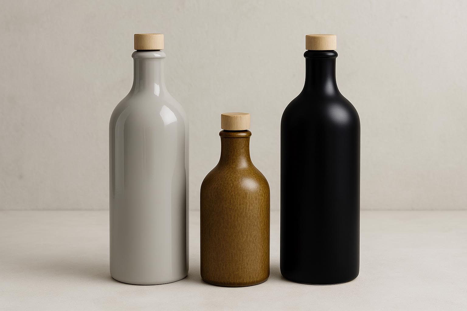 Glasoflaskor 750 ml lerkrus, stengods, beige, öppning: kork