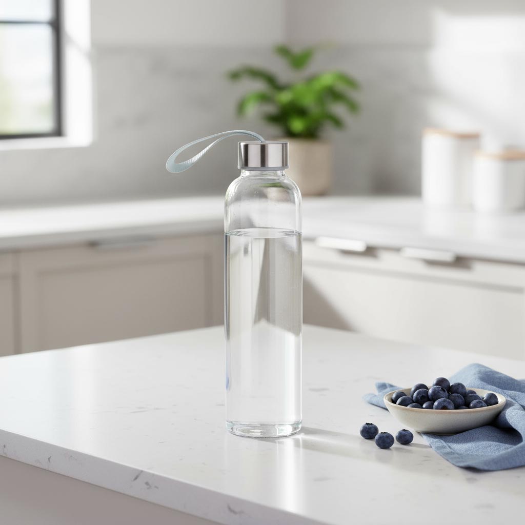 Glasoflaskor Skruvlock 'Perseus' med band, metall, silver